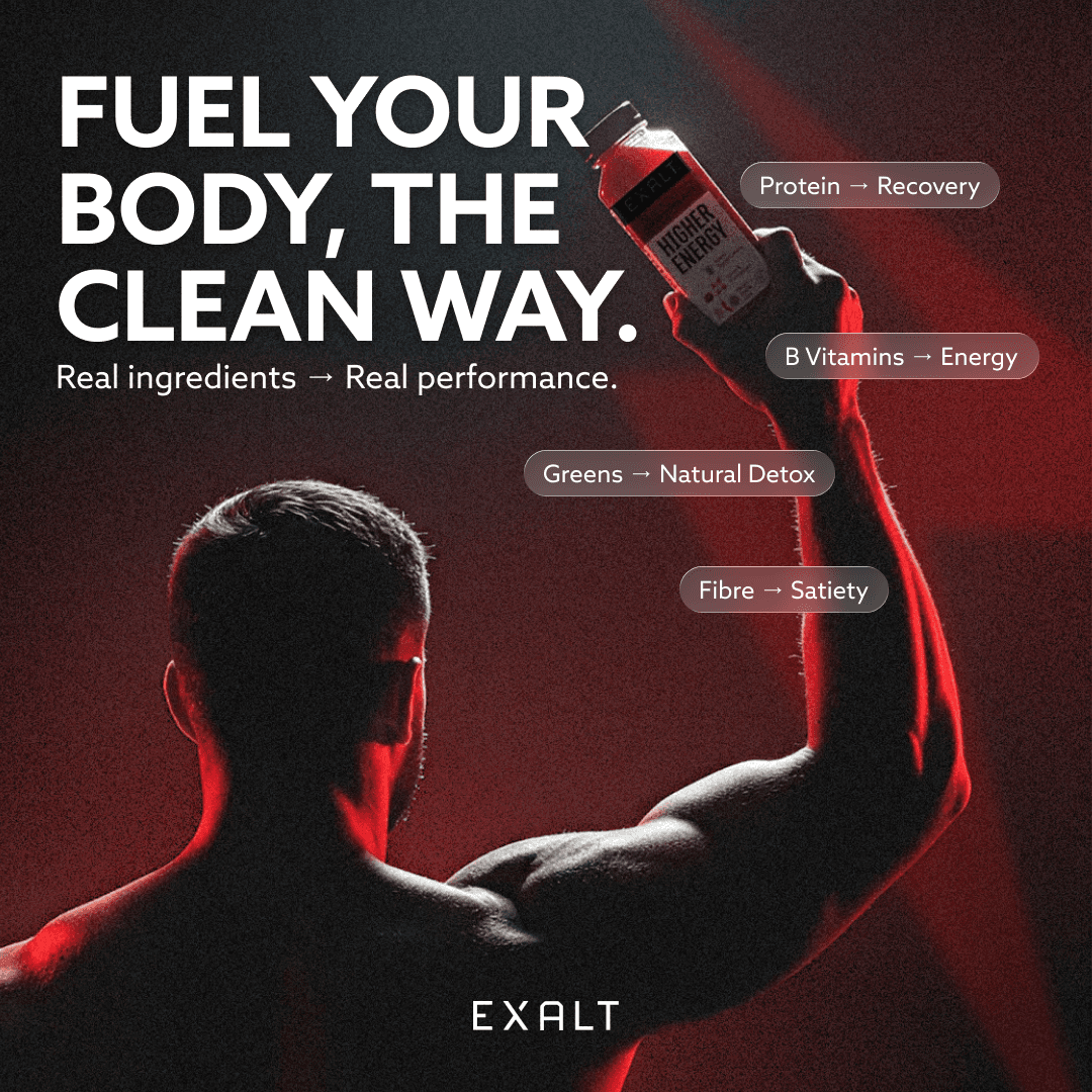 Creative advertising developed for EXALT, a functional nutrition brand, transforming product benefits into bold, social-first ad visuals.